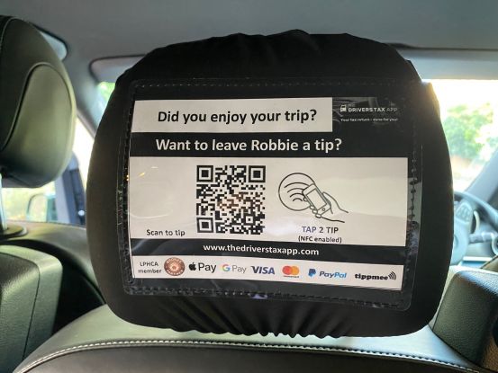 Passengers can now scan the drivers unique QR code or tap via NFC in their headrest cover to give them a tip. Your headrest cover is connected directly to your bank account.